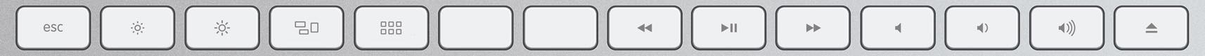 FNable 2 supports keyboard with Touch Bar. Choose the Touch Bar layout that you need for your applications or games. FNable will remember the layout and will automatically switch when you switch applications. Press the FN-key to revert to the standard combined view that shows both the application specific controls as well as the system controls.